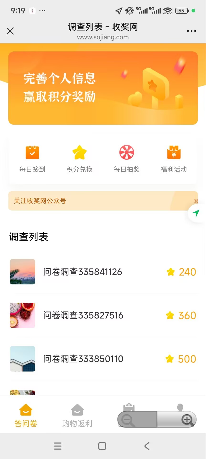 收奖网是一家老牌调查赚钱网站,成立已有10余年,是国内最大最专业的调查赚钱类网站。每天都会更新各类问卷,完成每份调查问卷奖励1-10元左右,只需要勾选即可,傻瓜级操作,满10元可申请提现,或者兑换礼品...