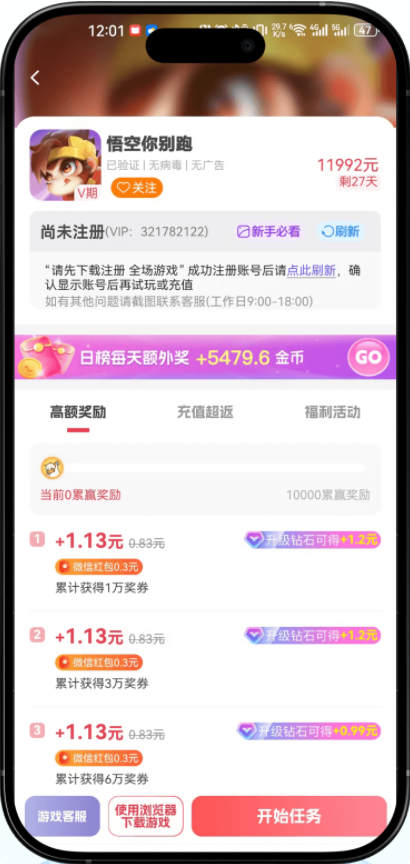 免费下载 超好钻APP,致力于为玩家提供便捷、丰富、高质量的游戏体验环境,同时帮助游戏开发者推广其作品,用户试玩游戏可获得一定的奖励、丰富好玩的运营活动等你参与,可直接提现。游戏简单丰富,包含益智、手游等多种类... 超好钻 支 持:安卓 大 小:29.8M 开发者:杭州挥戈科技有限公司 提 现: 说 明: 分 类:游戏试玩 下载量:23次 发 布:2025-12-16 手机扫码免费下载 纠错留言 #超好钻截图 #超好钻简介 超好钻APP,致力于为玩家提供便捷、丰富、高质量的游戏体验环境,同时帮助游戏开发者推广其作品,用户试玩游戏可获得一定的奖励、丰富好玩的运营活动等你参与,可直接提现。游戏简单丰富,包含益智、手游等多种类型的娱乐游戏;丰富好玩的运营活动等你参与领红包;获得收益支持支付宝、微信提现,提款秒到账,加入会员收益增加20%。